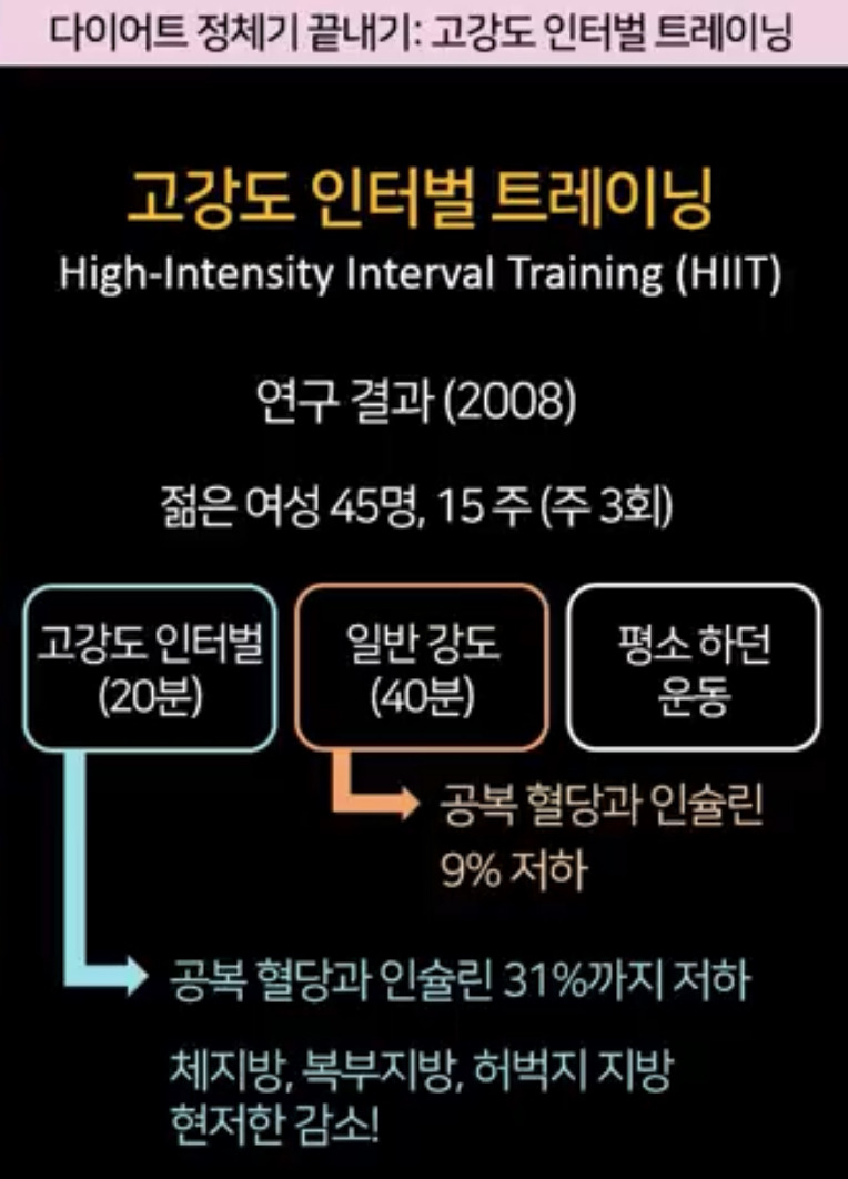 연구에 따르면, 인터벌 운동은 일반적인 유산소 운동보다 더 많은 체지방을 감소시키는 효과가 있어요. 예를 들어, 2008년 연구에서는 20분의 HIIT가 40분의 중간 강도 운동보다 혈당과 인슐린 수치를 더 많이 낮춘다고 해요.