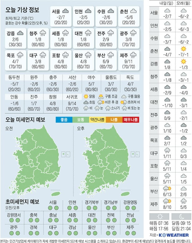 오늘은 전국적으로 눈 소식이 들리고, 기온이 많이 떨어질 것으로 예상되니, 외출 시 주의가 필요해요. 날씨에 따라 계획을 잘 세우시고, 안전한 하루 보내시길 바랍니다!